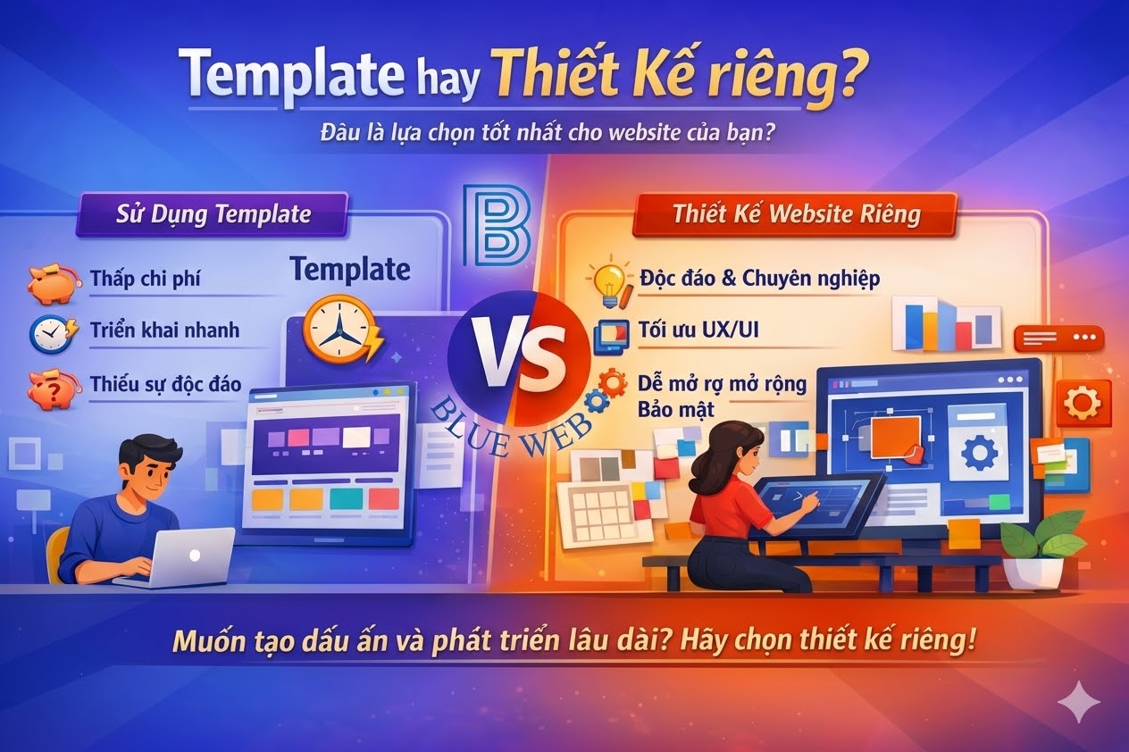 Khi bắt đầu xây dựng một website cho doanh nghiệp hoặc cá nhân, câu hỏi thường gặp là: nên dùng template có sẵn hay đầu tư thiết kế giao diện riêng? Mỗi lựa chọn đều mang lại những lợi ích và hạn chế khác nhau, ảnh hưởng trực tiếp đến chi phí, thời gian triển khai và giá trị thương hiệu.